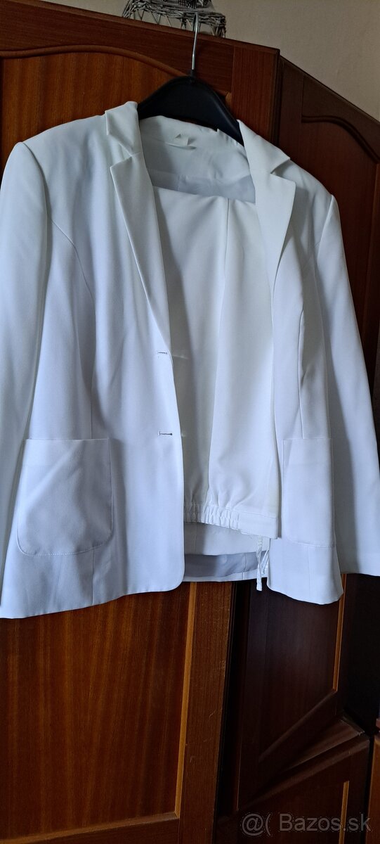 Ponúkam biely nohavicovy kostym veľkosť 44 nenoseny. Cena 18 eur.plus postovne.