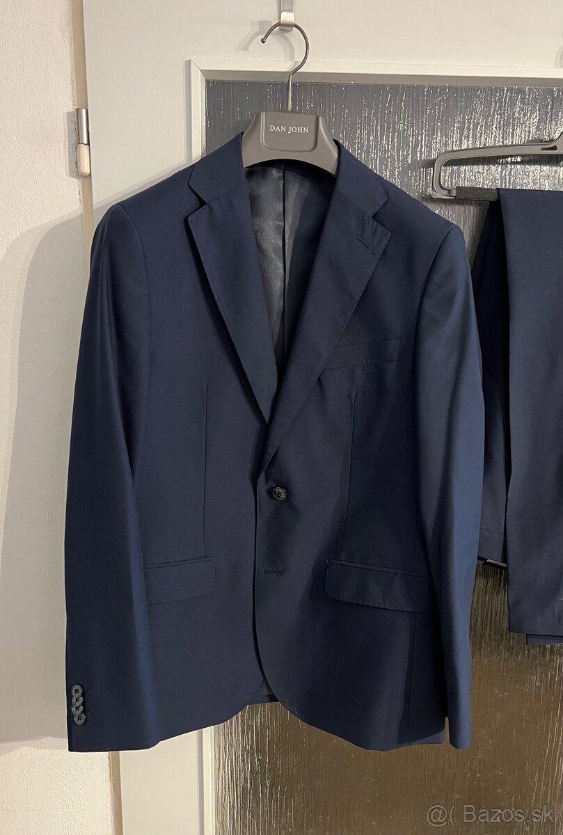 Predam parkrat obleceny pansky oblek tmavomodrej farby kupovany v taliansku znacky DAN JONH. Velkost 48, ale rozmery v cm su na fotkach. Nekrcivy material. Slim, sedi super na postave. Povodna cena: 240 eur.