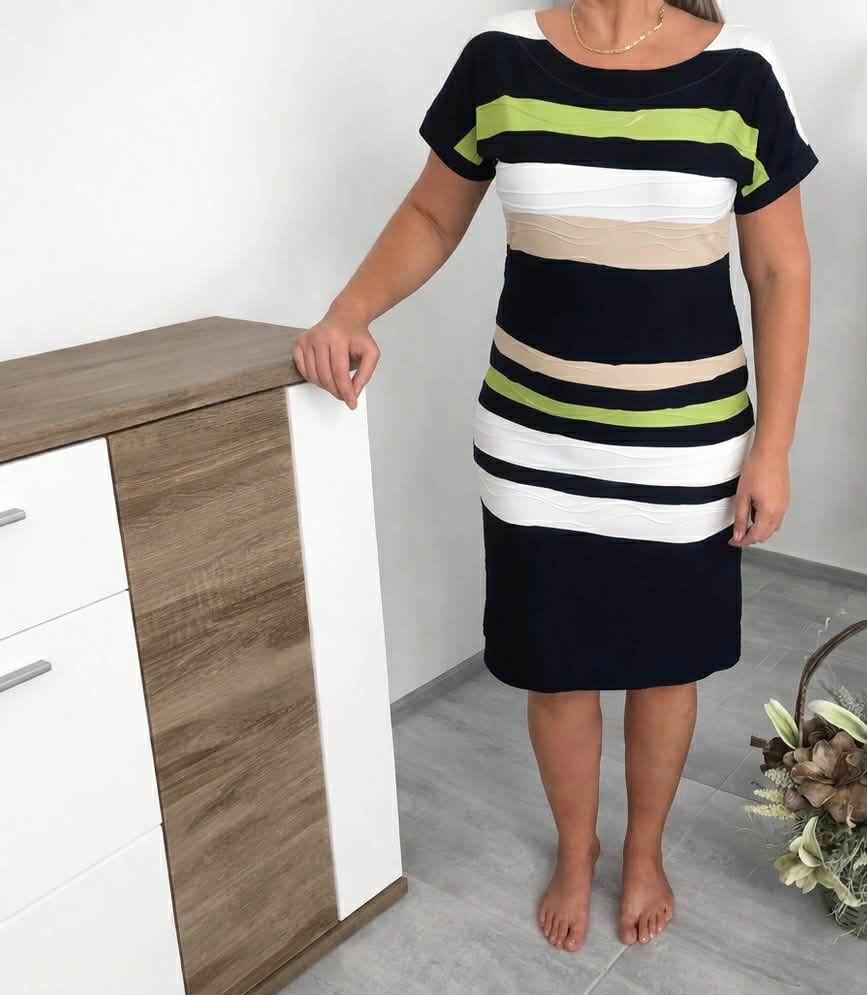 Jednoduché spoločenské šaty z elegantnej látky jemného vzoru / viď detail na foto /.