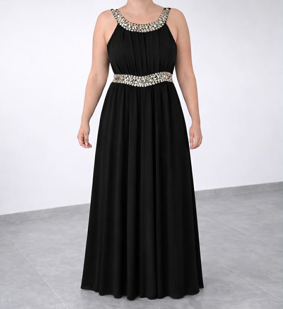 Čierne jednoduché šaty Michell, zdobené striebornými flitrami.