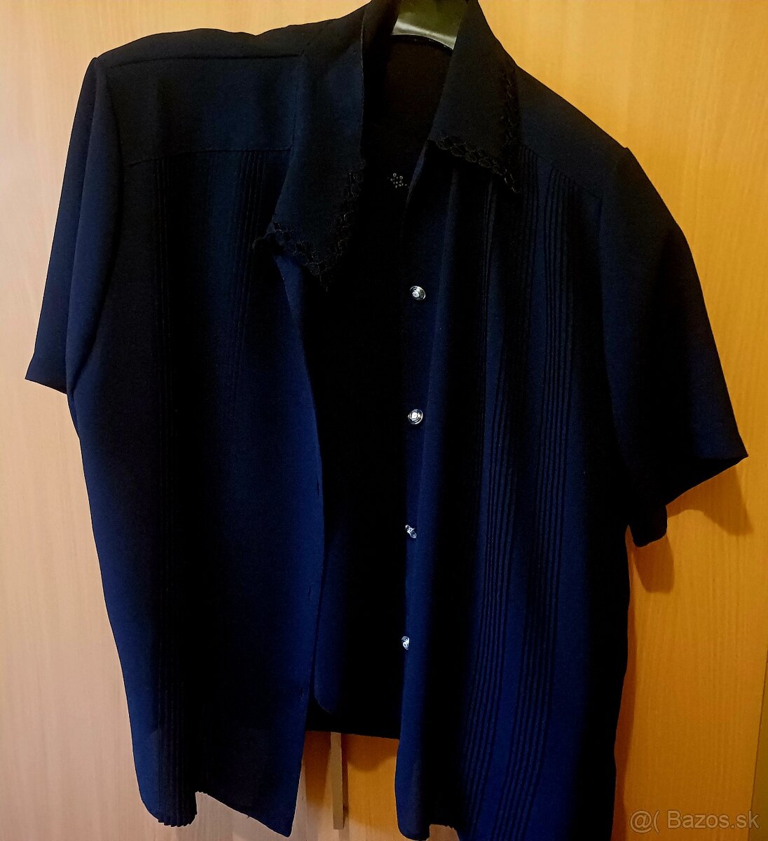 Predám damsky tmavomodry letný kostým pozostavajuci z 3 ks, top bez rukávov, tenká blúzka a sukňa.