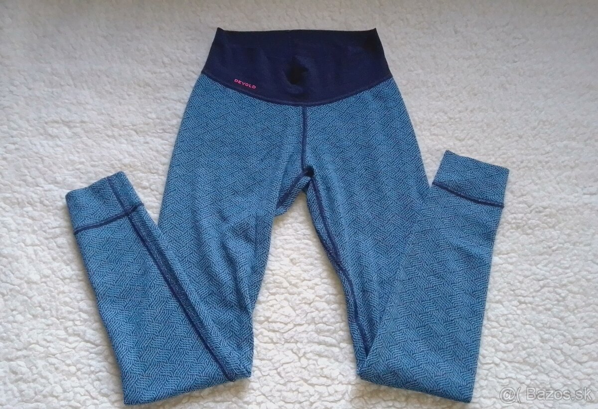 Obojstranné legíny 100% merino vlna Devold, veľkosť dámske S, veľmi dobrý stav bez vád, modrá farba so vzorom z každej strany iným.