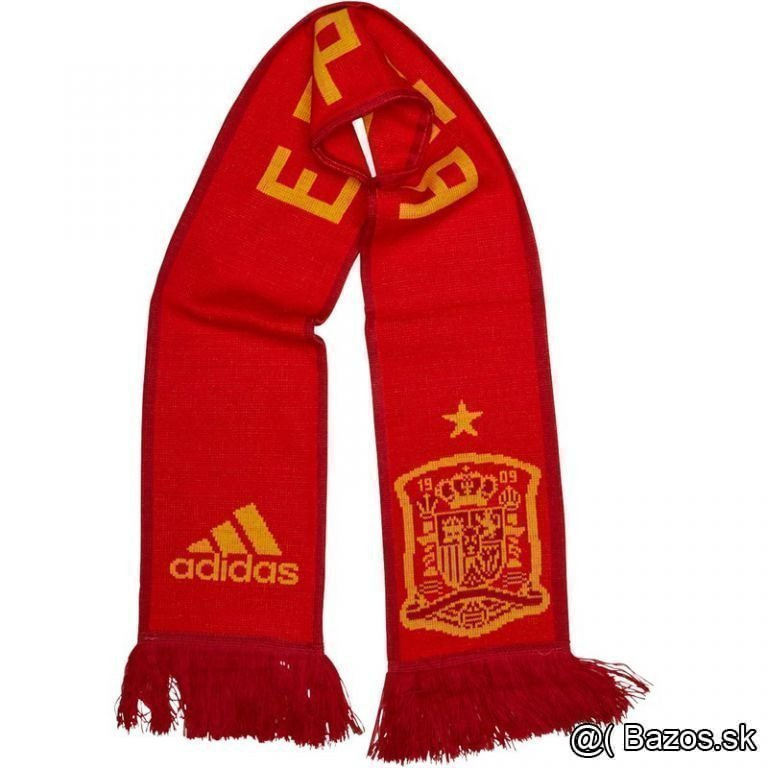 Predám nový kvalitný pánsky šál, originál značky Adidas, model Spain Home. Je pletený, v červeno-zlatej farbe, materiál je 100% akryl, dĺžka je cca 135 cm. Cena je 10 euro.