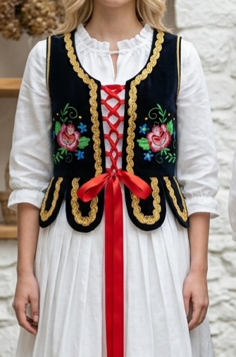 Predám vestu od kroja. Strojová výšivka. Veľkosť vhodná na 158, 164 až dámska 36/S. Stav veľmi dobrý. Pôvodná cena 105 eur.